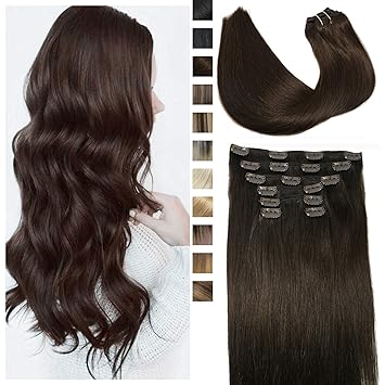 Amazon Com 14 Clip In Human Hair Extensions Full Head 110g 7 Pieces 16 Clips Chocolate Brown Double Weft Brazilian Real Remy Hair Extensions Thick Straight Silky 14 110g 4 Beauty Personal Care